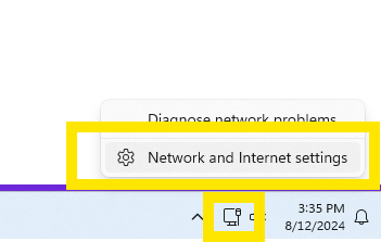 - Right click on your network icon at the bottom right of your screen. This may be your wifi signal icon (if you're on wifi) or a computer and cable icon (if you're hardwired).