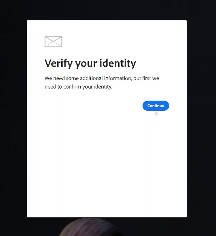 2. In the browser window that opens, you'll be prompted to verify your identity. Click the "Continue" button to do this. The code will be sent to your email account.