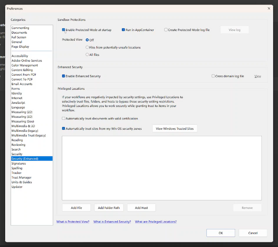 Uncheck "Enable Protected Mode at startup" to toggle this feature. This will allow features of PerfectLaw to function properly.